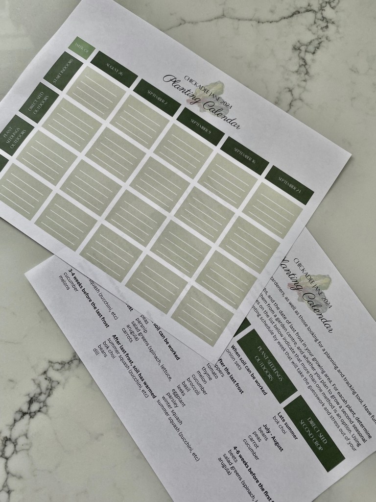 Finally, I know exactly when to plant my seeds in the spring and I’m not scrambling to keep up with social media cowboys who may be planting in warmer regions. Do you feel the same? Some plants can tolerate a frost; some wither away with the cold. Some plants need a longer growing season and some shorter. Some people like to start seeds in their home to lengthen the season; some buy seedlings at a garden centre when it’s time to plant outside. With my free planting calendar, take all the confusion out of your spring. Simply download and print and, using the date of your region’s last frost, follow the instructions on the last page to complete your own personalized planting calendar. Need help with the your average date of last frost? Farmer’s Almanac can help you out! Visit: https://www.almanac.com/gardening/frostdates.