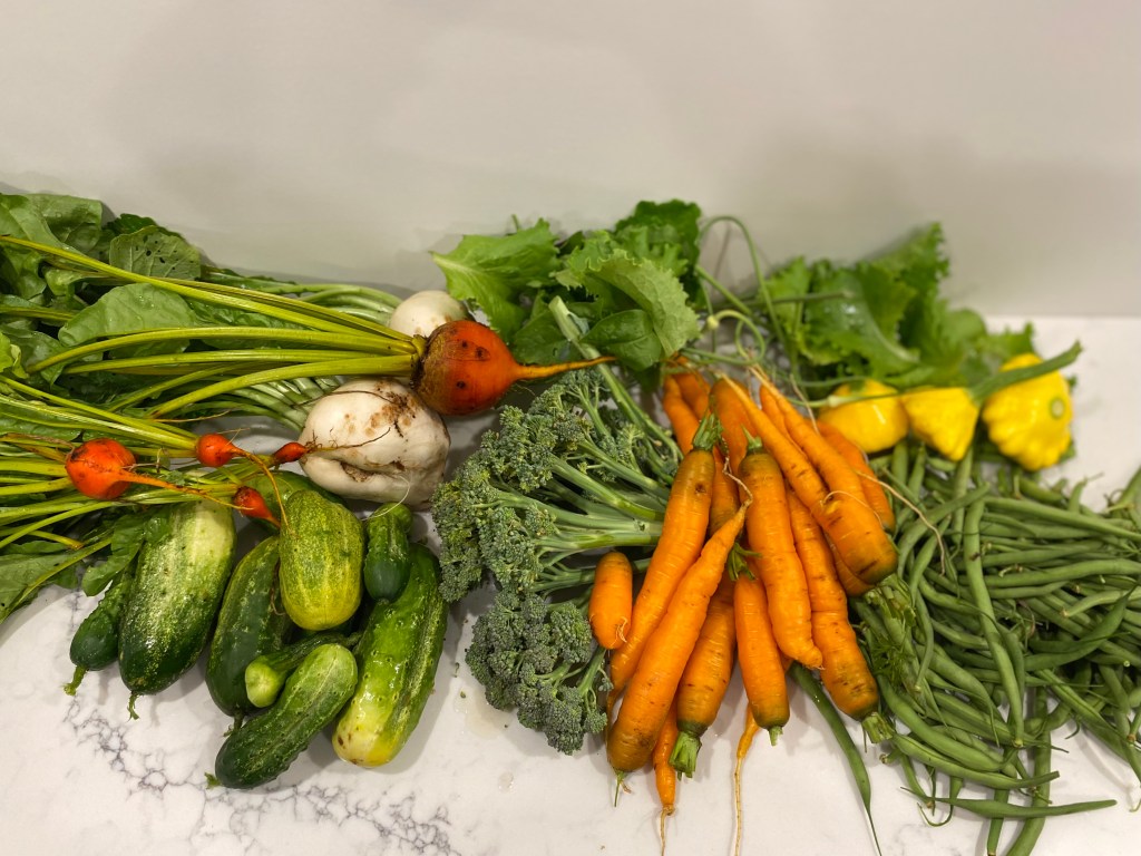 And as someone who has pridefully boasted that I could build gardens that would withstand a no‑water system, and be stronger for it … well, my ego took a steep nosedive. With only a single skill – gardening- I began having some fear about my usefulness in a drought‑based apocalypse. Even the wildflower beds and mature bushes were nearly dead or showing significant wilt. The nail in my coffin was a Facebook memory reminding me that in early summer 2022 we had a lovely and robust early harvest that at the time I attributed to significant early summer rainfall. The comparison of nary an inch of growth, to bringing in full salads … I realized that even our supply of tomato sauce was really at risk. I began lugging jug after jug of (paid) town water to the back garden every other night, knowing I was a tad too late to achieve any feed‑my‑family‑through‑the‑winter glory. We’re talking four watering cans per raised bed … with ten beds and counting. At least I could count it as an arm day.